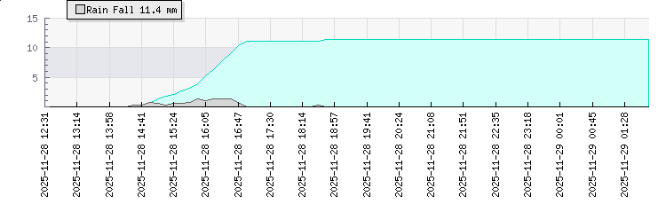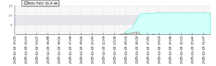 | Wind Gust: | - | Min Temp: | 15.6 °C | Max Temp: | 15.6 °C | | Wind Average: | - | Min Hum: | 100 % | Max Hum: | 100 % | |  |