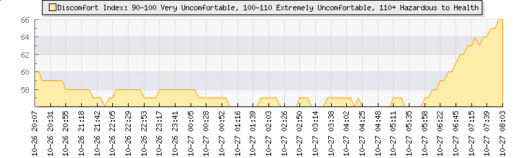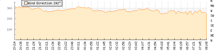 In the last few minutes the wind was West South West at an average speed of 18 kmh, reaching up to 26 kmh and a low of 10 kmh. The gust strength is16 kmh above the minimum speed |