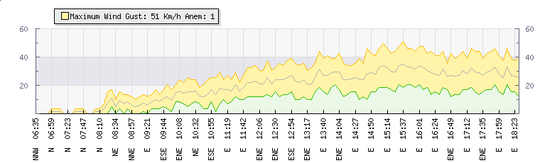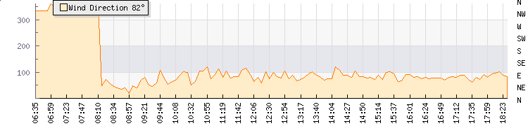 In the last few minutes the wind was Easterly at an average speed of 27 kmh, reaching up to 41 kmh and a low of 14 kmh. The gust strength is27 kmh above the minimum speed |