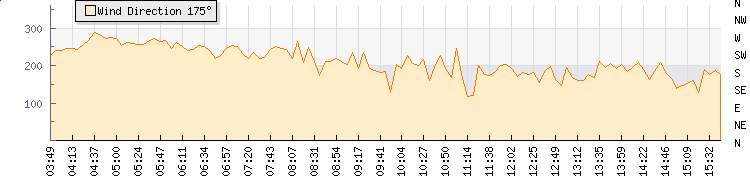 In the last few minutes the wind was East North East at an average speed of 6 knots, reaching up to 9 knots and a low of 3 knots. The gust strength is6 knots above the minimum speed |