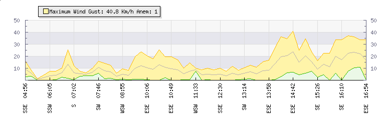 In the last few minutes the wind was South Westerly at an average speed of 3 kmh, reaching up to 6 kmh and a low of 0 kmh. The gust strength is6 kmh above the minimum speed |
