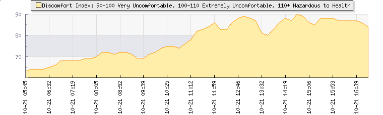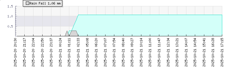 Wind Speed: | 0|3|5 knots | Wind Direction: | E 86° | Temperature: | 16.5°C | Wet Bulb: | 15.1°C | Discomfort: | 72 | Humidity: | 88% | Rainfall Today: | 1.1mm | 12 hrs Rainfall: | 1.1mm | 24 hrs Rainfall: | 4mm | Barometer: | 1007mb | Dew Point: | 14.5°C | Clouds AGL: | 799ft (244 m) | Density-Alt: | 4186ft (1276 m) | Solar Radiation: | 38Wm² | Fire Danger: | |