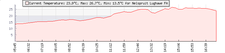 GPS Co-ordinates: | S 25º 30' 11, E 30º 54' 42 | ASL: | 2901 feet | Sunrise / Sunset: | 05:18 / 18:05 | Beaufort Scale: | Light Air |