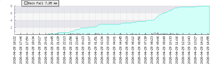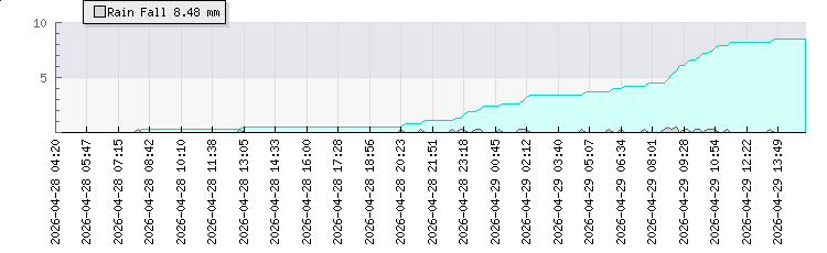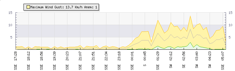 In the last few minutes the wind was South Westerly at an average speed of 5 kmh, reaching up to 9 kmh and a low of 1 kmh. The gust strength is8 kmh above the minimum speed |