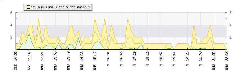 In the last few minutes the wind was Northerly at an average speed of 1 mph, reaching up to 1 mph and a low of 0 mph. The gust strength is1 mph above the minimum speed |