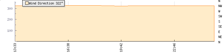 In the last few minutes the wind was North Westerly at an average speed of 4 knots, reaching up to 6 knots and a low of 1 knots. The gust strength is5 knots above the minimum speed |