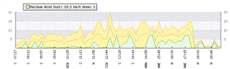 In the last few minutes the wind was Northerly at an average speed of 4 kmh, reaching up to 8 kmh and a low of 0 kmh. The gust strength is8 kmh above the minimum speed |