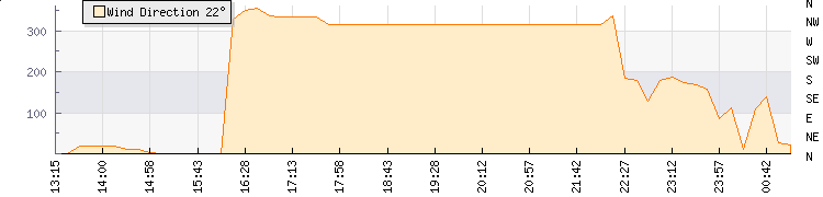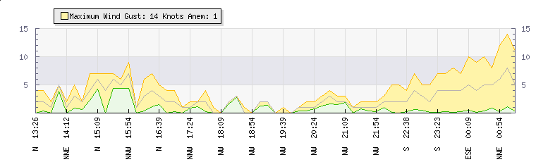 In the last few minutes the wind was Southerly at an average speed of 2 knots, reaching up to 5 knots and a low of 0 knots. The gust strength is5 knots above the minimum speed |