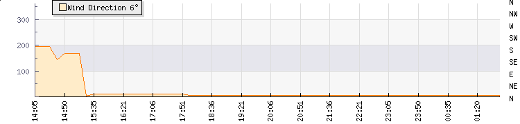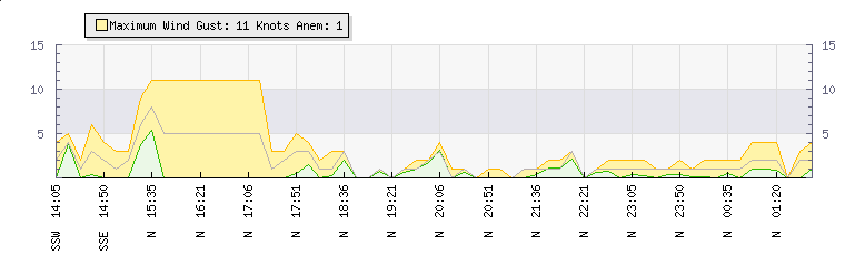 In the last few minutes the wind was Northerly at an average speed of 1 knots, reaching up to 2 knots and a low of 0 knots. The gust strength is2 knots above the minimum speed |