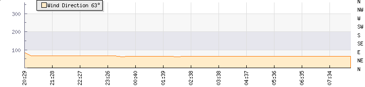 In the last few minutes the wind was East North East at an average speed of 0 kmh, reaching up to 0 kmh and a low of 0 kmh. The gust strength is0 kmh above the minimum speed |