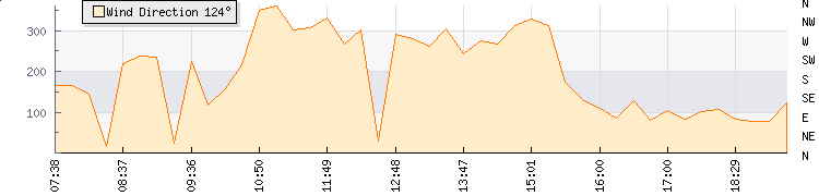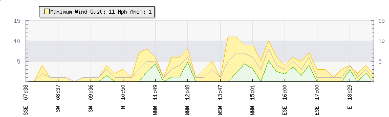 In the last few minutes the wind was Easterly at an average speed of 1 mph, reaching up to 1 mph and a low of 0 mph. The gust strength is1 mph above the minimum speed |