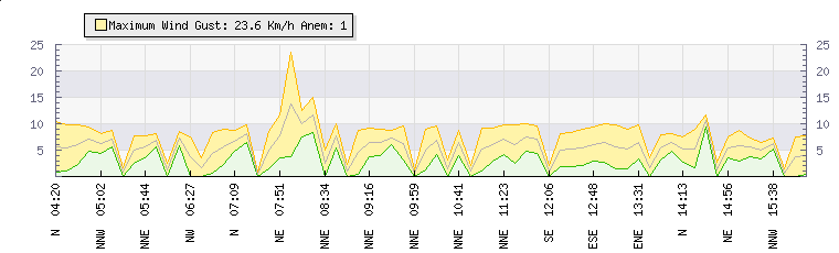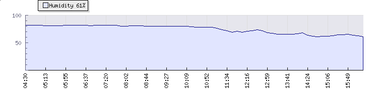 | Wind Gust: | - | Min Temp: | 17.8 °C | Max Temp: | 26.8 °C | | Wind Average: | - | Min Hum: | 65 % | Max Hum: | 82 % | |  |