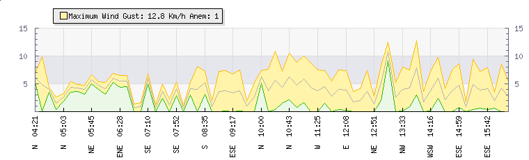 Wind Gust: | - | Min Temp: | 12.1 °C | Max Temp: | 31.3 °C | Wind Average: | - | Min Hum: | 37 % | Max Hum: | 75 % | |  |