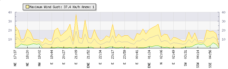 | Wind Gust: | - | Min Temp: | 21.2 °C | Max Temp: | 22 °C | | Wind Average: | - | Min Hum: | 81 % | Max Hum: | 82 % | |  |