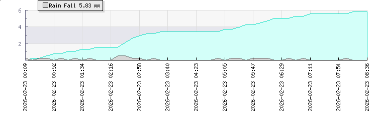 | Wind Speed: | -|-|- kmh | Wind Direction: | S 173° | Temperature: | 20.6°C | | Wet Bulb: | 18.3°C | Discomfort: | 82 | Humidity: | 82% | | Rainfall Today: | 5.6mm | 12 hrs Rainfall: | 8.7mm | 24 hrs Rainfall: | 9mm | | Barometer: | 1017.7mb | Dew Point: | 17.4°C | Clouds AGL: | 1274ft (388 m) | | Density-Alt: | 4610ft (1405 m) | Solar Radiation: | 13Wm² |