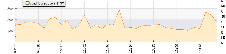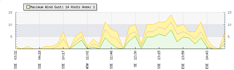 In the last few minutes the wind was South South East at an average speed of 8 knots, reaching up to 11 knots and a low of 5 knots. The gust strength is6 knots above the minimum speed |