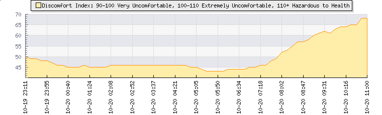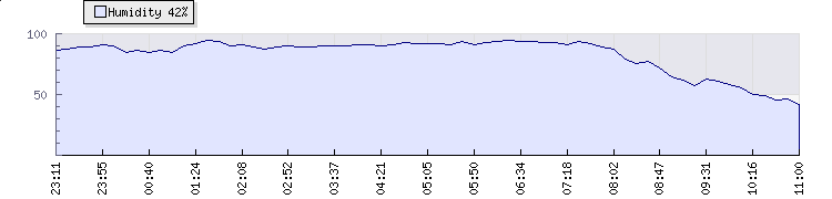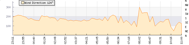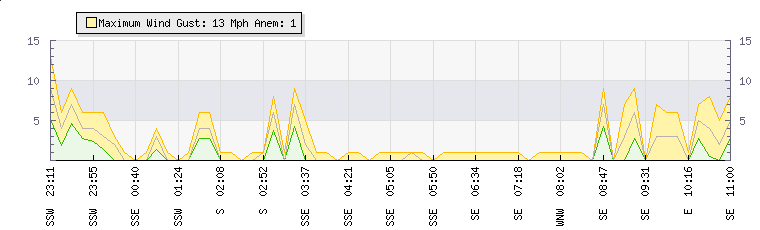 In the last few minutes the wind was Easterly at an average speed of 1 mph, reaching up to 1 mph and a low of 0 mph. The gust strength is1 mph above the minimum speed |
