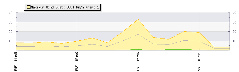 In the last few minutes the wind was Northerly at an average speed of 2 kmh, reaching up to 4 kmh and a low of 0 kmh. The gust strength is4 kmh above the minimum speed |
