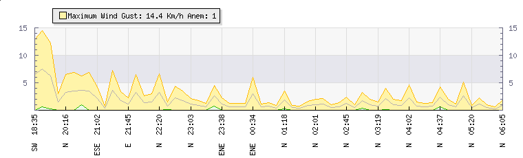 In the last few minutes the wind was Northerly at an average speed of 2 kmh, reaching up to 4 kmh and a low of 0 kmh. The gust strength is4 kmh above the minimum speed |