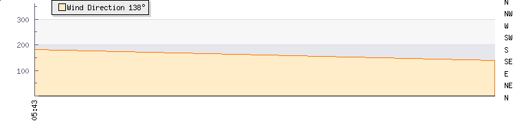 In the last few minutes the wind was South Easterly at an average speed of 2 knots, reaching up to 4 knots and a low of 0 knots. The gust strength is4 knots above the minimum speed |