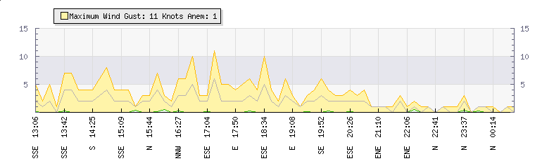 In the last few minutes the wind was Northerly at an average speed of 1 knots, reaching up to 1 knots and a low of 0 knots. The gust strength is1 knots above the minimum speed |