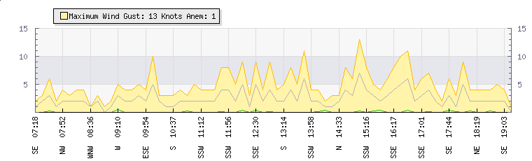 In the last few minutes the wind was West North West at an average speed of 2 knots, reaching up to 4 knots and a low of 0 knots. The gust strength is4 knots above the minimum speed |
