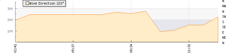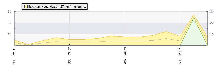 In the last few minutes the wind was Westerly at an average speed of 8 kmh, reaching up to 13 kmh and a low of 2 kmh. The gust strength is11 kmh above the minimum speed |