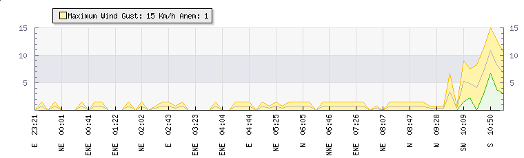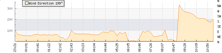 In the last few minutes the wind was North North West at an average speed of 1 kmh, reaching up to 2 kmh and a low of 0 kmh. The gust strength is2 kmh above the minimum speed |