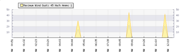 In the last few minutes the wind was North Westerly at an average speed of 0 kmh, reaching up to 0 kmh and a low of 0 kmh. The gust strength is0 kmh above the minimum speed |