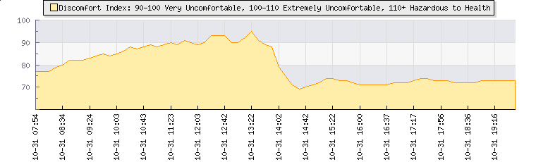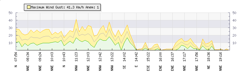 | Last Update: | 2025-10-31 12:42:54 |  | Weather Summary: | In the last few minutes the wind was North North West at an average speed of 22 kmh, reaching up to 29 kmh and a low of 15 kmh.  The gust strength is14 kmh above the minimum speed |  |
