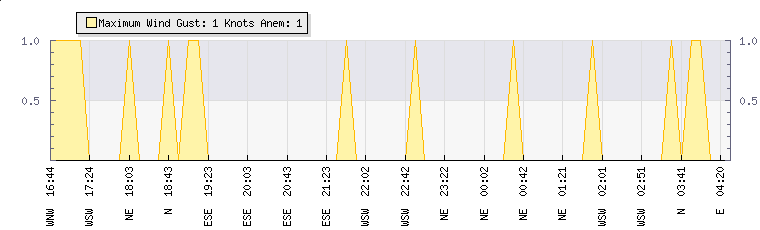 In the last few minutes the wind was North Easterly at an average speed of 0 knots, reaching up to 0 knots and a low of 0 knots. The gust strength is0 knots above the minimum speed |