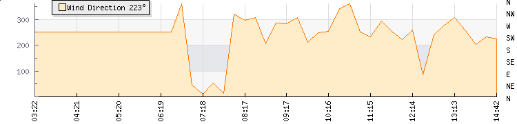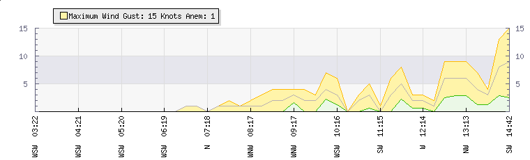 In the last few minutes the wind was Westerly at an average speed of 4 knots, reaching up to 5 knots and a low of 2 knots. The gust strength is3 knots above the minimum speed |