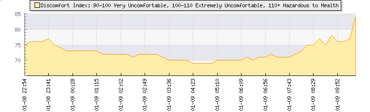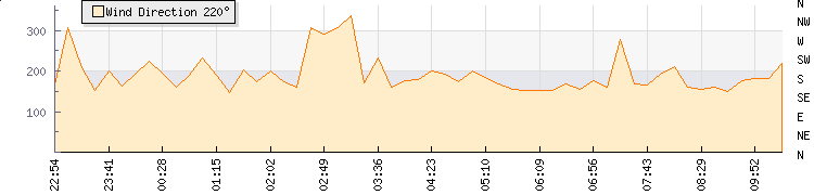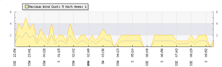 In the last few minutes the wind was West South West at an average speed of 1 kmh, reaching up to 2 kmh and a low of 0 kmh. The gust strength is2 kmh above the minimum speed |
