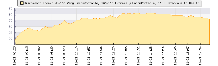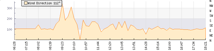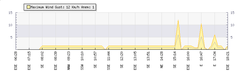 In the last few minutes the wind was East South East at an average speed of 1 kmh, reaching up to 2 kmh and a low of 0 kmh. The gust strength is2 kmh above the minimum speed |