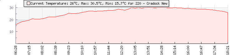 | GPS Co-ordinates: | S 32º 2' 42, E 26º 47' 34 | | ASL: | 1017 feet | | Sunrise / Sunset: | 05:03 / 18:55 | | Beaufort Scale: | Light Air |