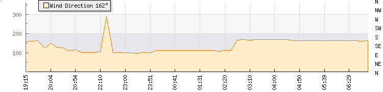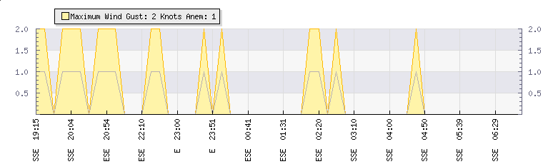 In the last few minutes the wind was Easterly at an average speed of 0 knots, reaching up to 0 knots and a low of 0 knots. The gust strength is0 knots above the minimum speed |