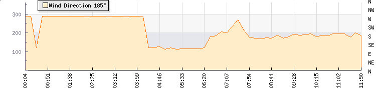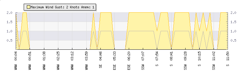 In the last few minutes the wind was South South West at an average speed of 1 knots, reaching up to 2 knots and a low of 0 knots. The gust strength is2 knots above the minimum speed |