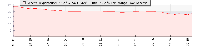 | GPS Co-ordinates: | S 24º 6' 36, E 27º 41' 49 | | ASL: | 3363 feet | | Sunrise / Sunset: | 05:13 / 18:45 | | Beaufort Scale: | Light Air |