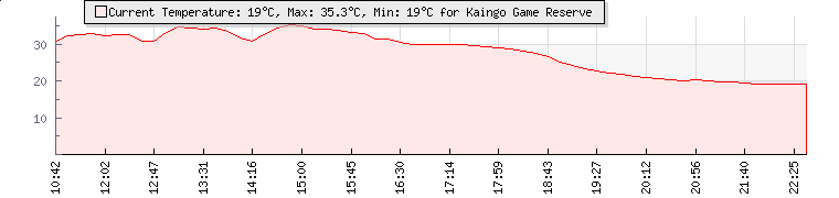| GPS Co-ordinates: | S 24º 6' 36, E 27º 41' 49 | | ASL: | 3363 feet | | Sunrise / Sunset: | 05:27 / 19:01 | | Beaufort Scale: | Light Air |