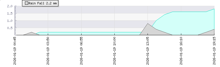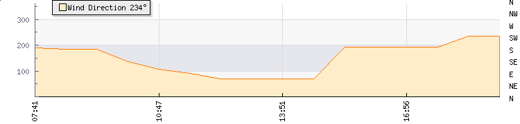 In the last few minutes the wind was South South West at an average speed of 1 kmh, reaching up to 1 kmh and a low of 0 kmh. The gust strength is1 kmh above the minimum speed |