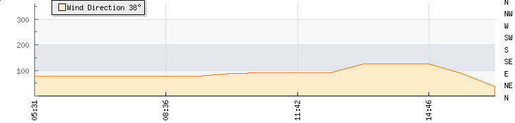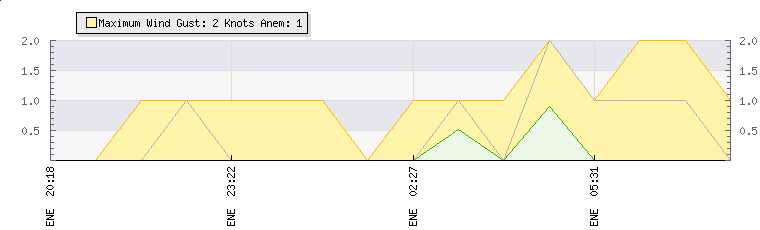 In the last few minutes the wind was South Easterly at an average speed of 5 knots, reaching up to 5 knots and a low of 4 knots. The gust strength is1 knots above the minimum speed |