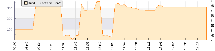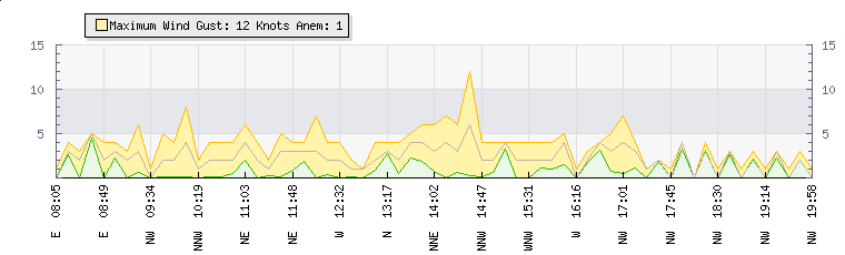 In the last few minutes the wind was North Westerly at an average speed of 4 knots, reaching up to 4 knots and a low of 3 knots. The gust strength is1 knots above the minimum speed |