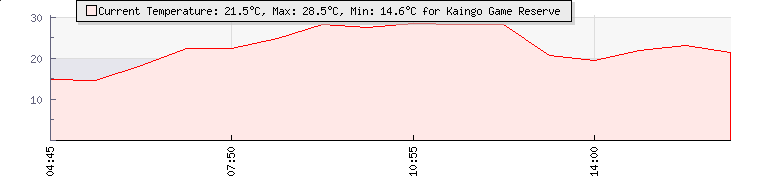 | GPS Co-ordinates: | S 24º 6' 36, E 27º 41' 49 | | ASL: | 3363 feet | | Sunrise / Sunset: | 05:21 / 18:25 | | Beaufort Scale: | Light Breeze |