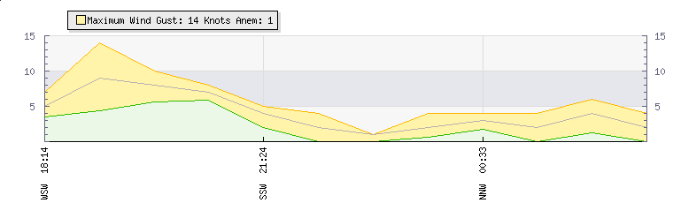 In the last few minutes the wind was Westerly at an average speed of 2 knots, reaching up to 4 knots and a low of 0 knots. The gust strength is4 knots above the minimum speed |