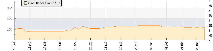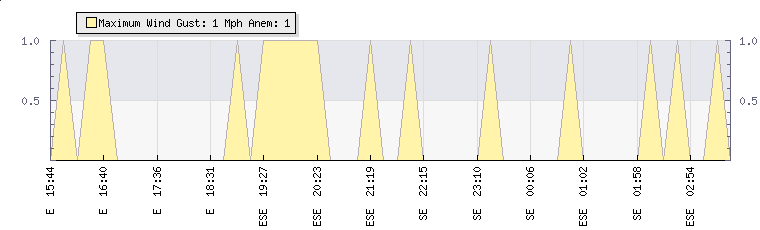 In the last few minutes the wind was South Easterly at an average speed of 0 mph, reaching up to 0 mph and a low of 0 mph. The gust strength is0 mph above the minimum speed |