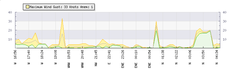 In the last few minutes the wind was Northerly at an average speed of 3 knots, reaching up to 4 knots and a low of 1 knots. The gust strength is3 knots above the minimum speed |