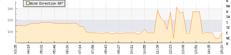 In the last few minutes the wind was Westerly at an average speed of 23 mph, reaching up to 42 mph and a low of 4 mph. The gust strength is38 mph above the minimum speed |