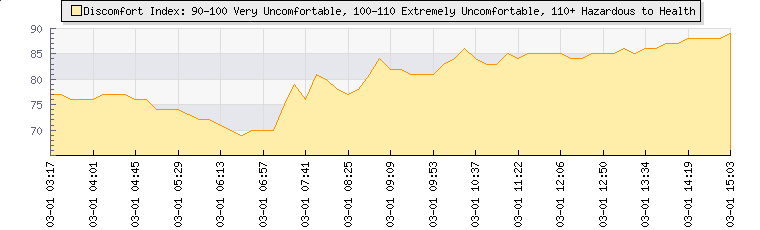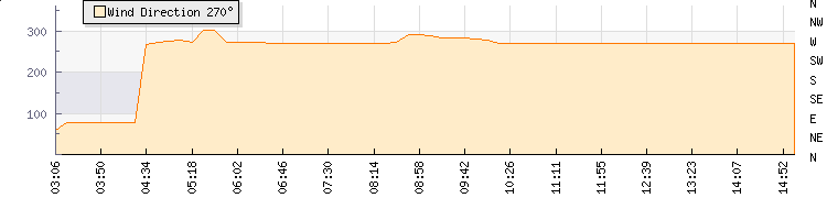 In the last few minutes the wind was Westerly at an average speed of 7 mph, reaching up to 13 mph and a low of 0 mph. The gust strength is13 mph above the minimum speed |