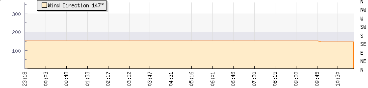 In the last few minutes the wind was South South East at an average speed of 4 kmh, reaching up to 8 kmh and a low of 0 kmh. The gust strength is8 kmh above the minimum speed |