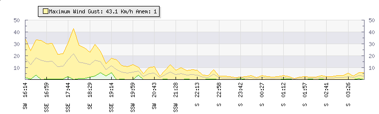 In the last few minutes the wind was Southerly at an average speed of 1 kmh, reaching up to 2 kmh and a low of 0 kmh. The gust strength is2 kmh above the minimum speed |